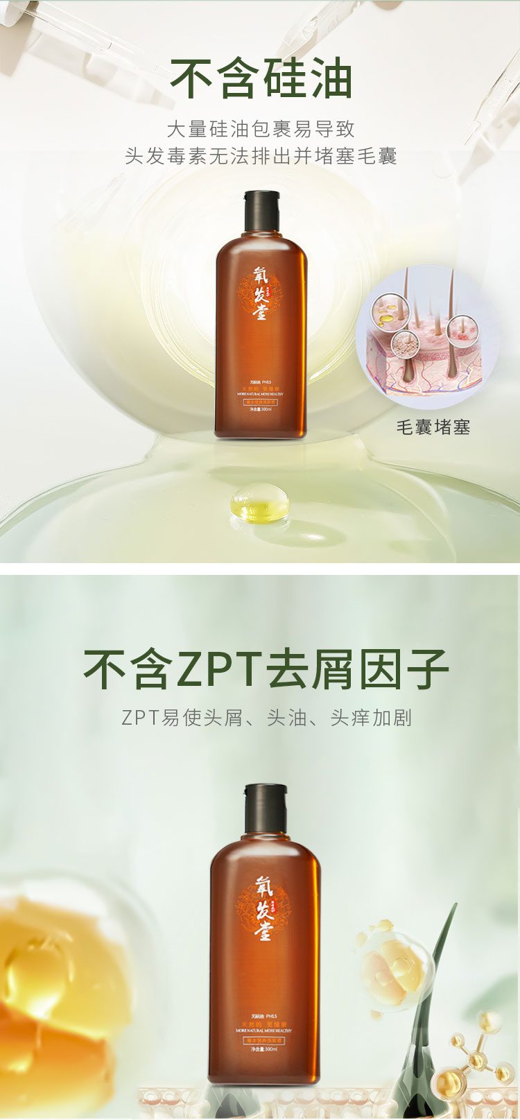 2、不含ZPT,俗称去屑因子、常规洗发水中的吡啶硫酮锌,ZPT易导致真菌,使头屑、头油、头痒加剧。