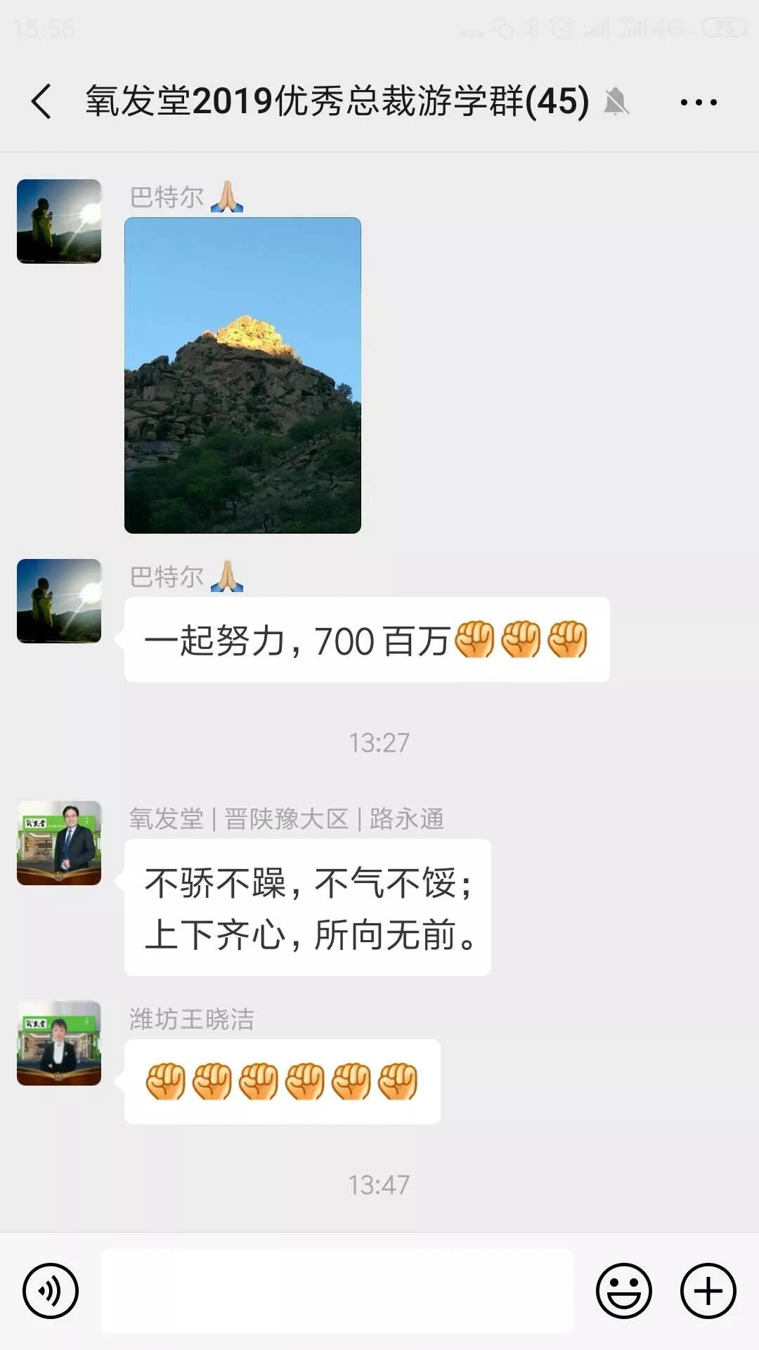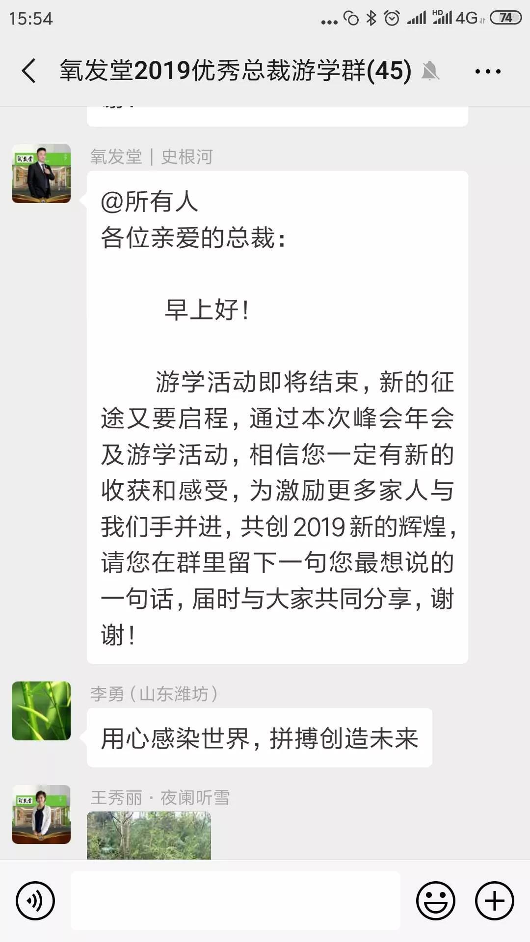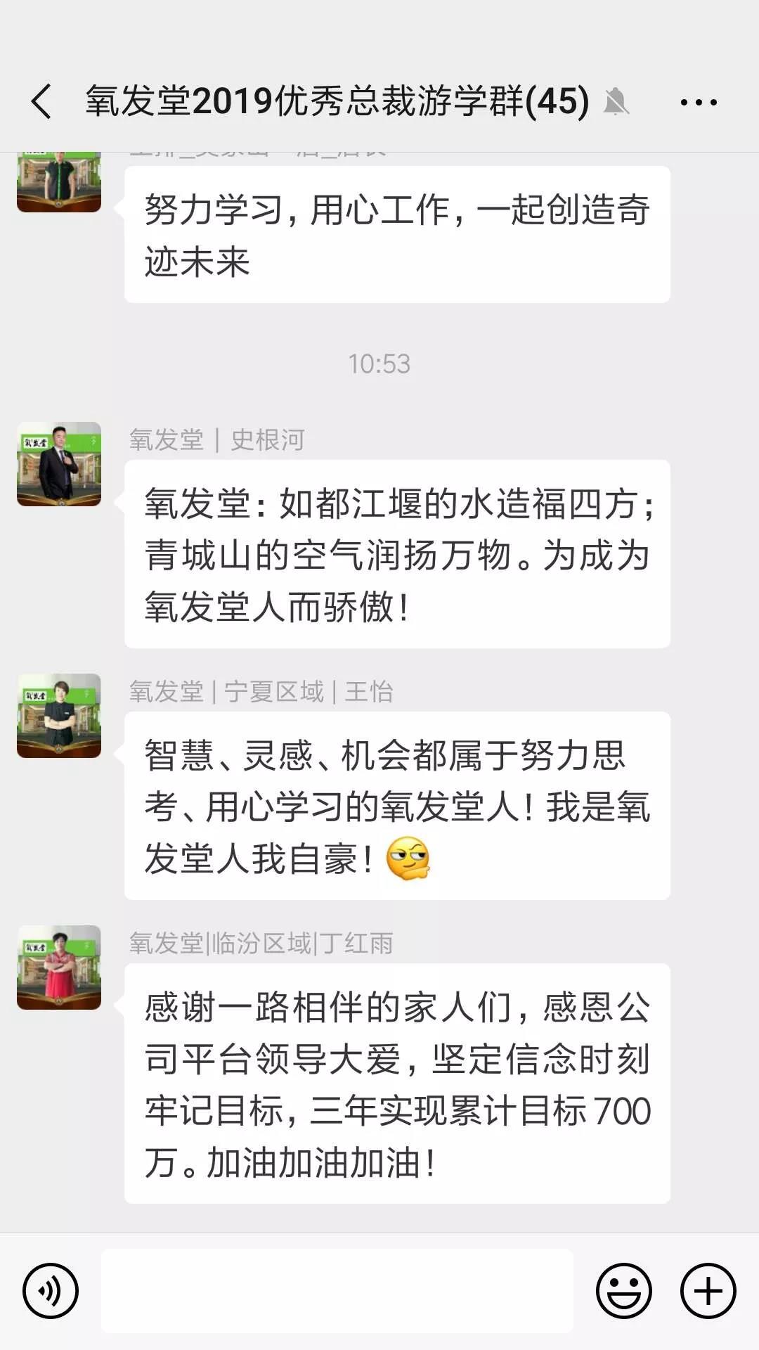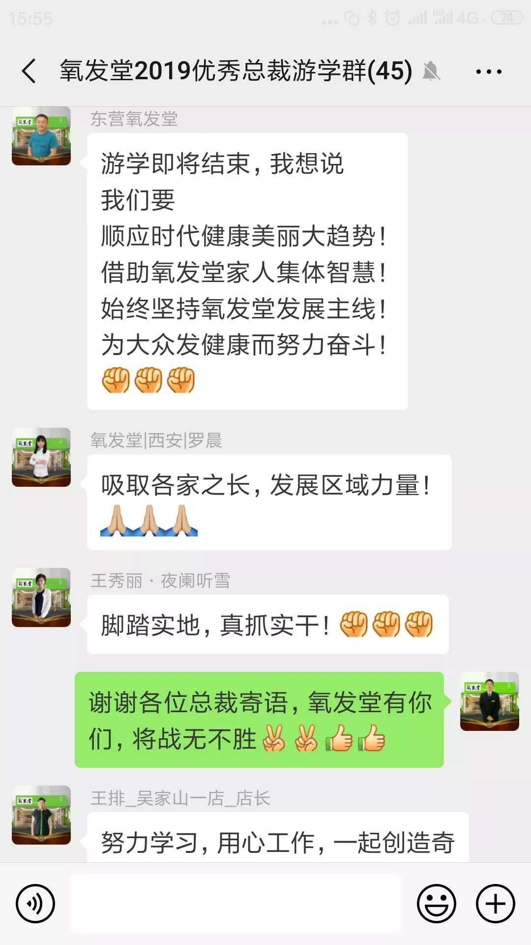 两天的游学活动很快结束了,然而总裁家人们仍意犹未尽,依依不舍,纷纷在微信群里留下感言,总结心得,感恩过往,展望明天,一句句发自肺腑的心声,激励着全体氧发堂家人振奋精神,再踏征程,再创2019新的辉煌!